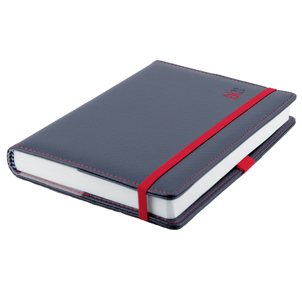 Kalendarz książkowy ELASTIC dzienny A5 2025 polski - grafit/czerwona gumka