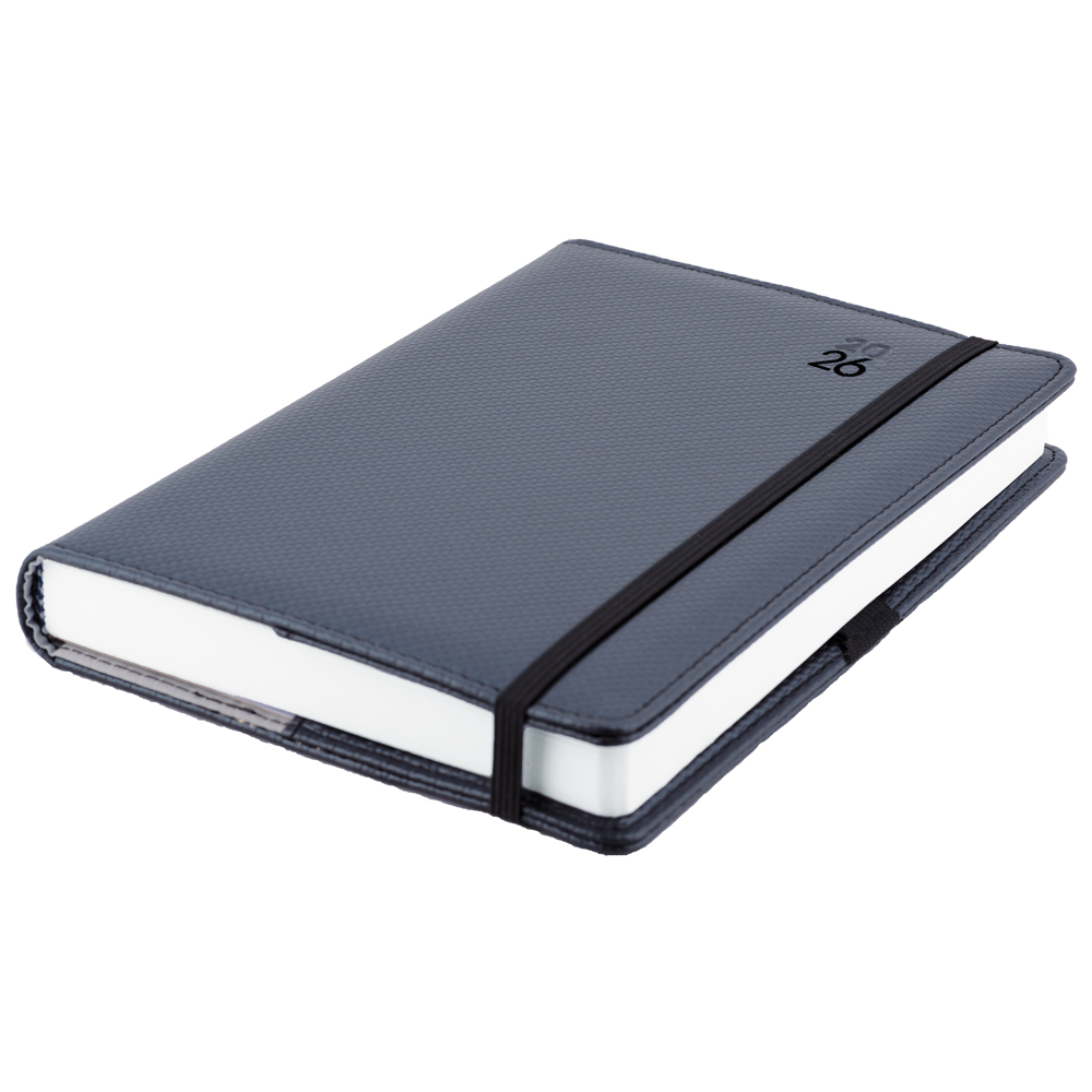Kalendarz książkowy ELASTIC dzienny A5 2026 słowacki?? - grafit/czarna gumka