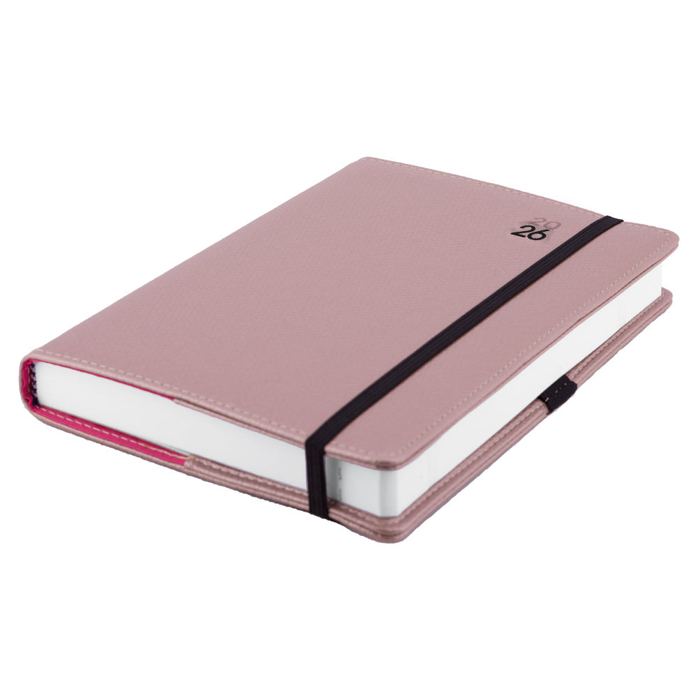 Kalendarz książkowy ELASTIC dzienny A5 2026 słowacki?? - pudrowy/czarna gumka