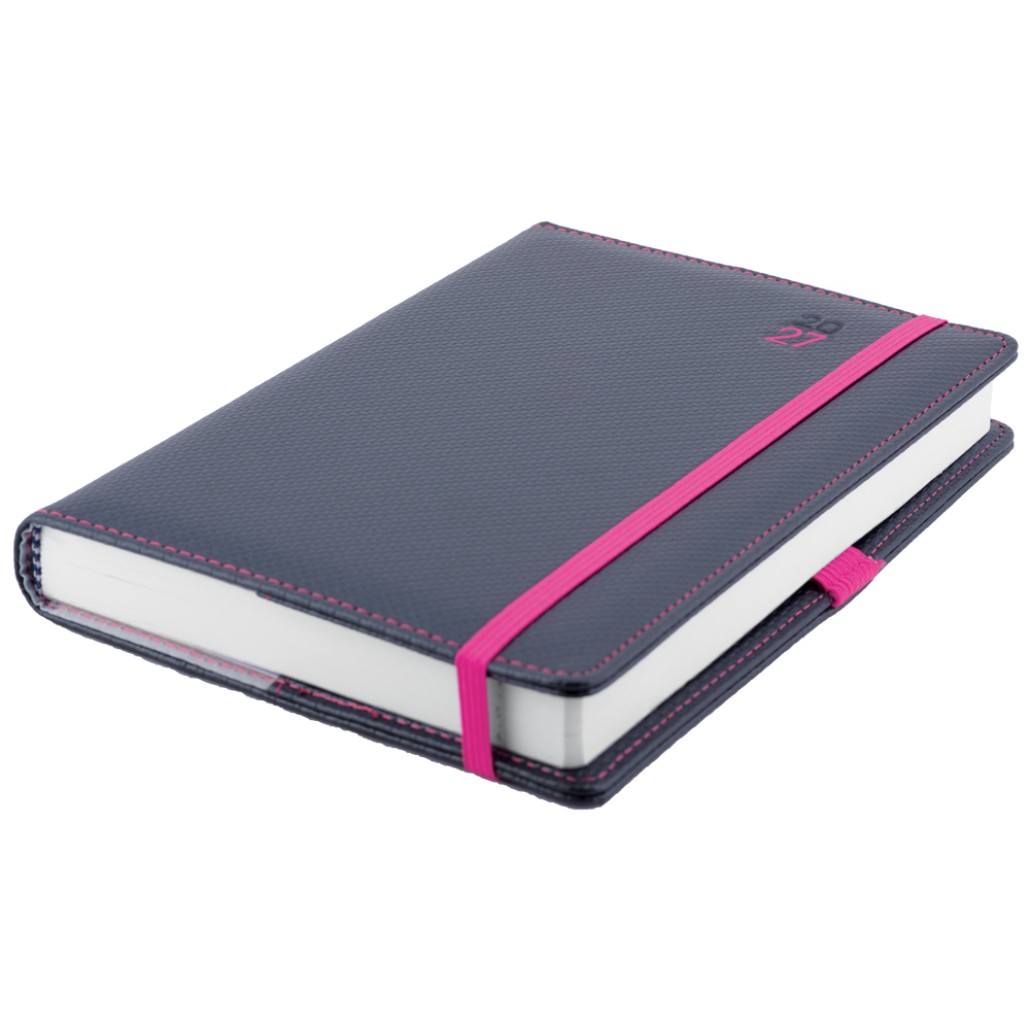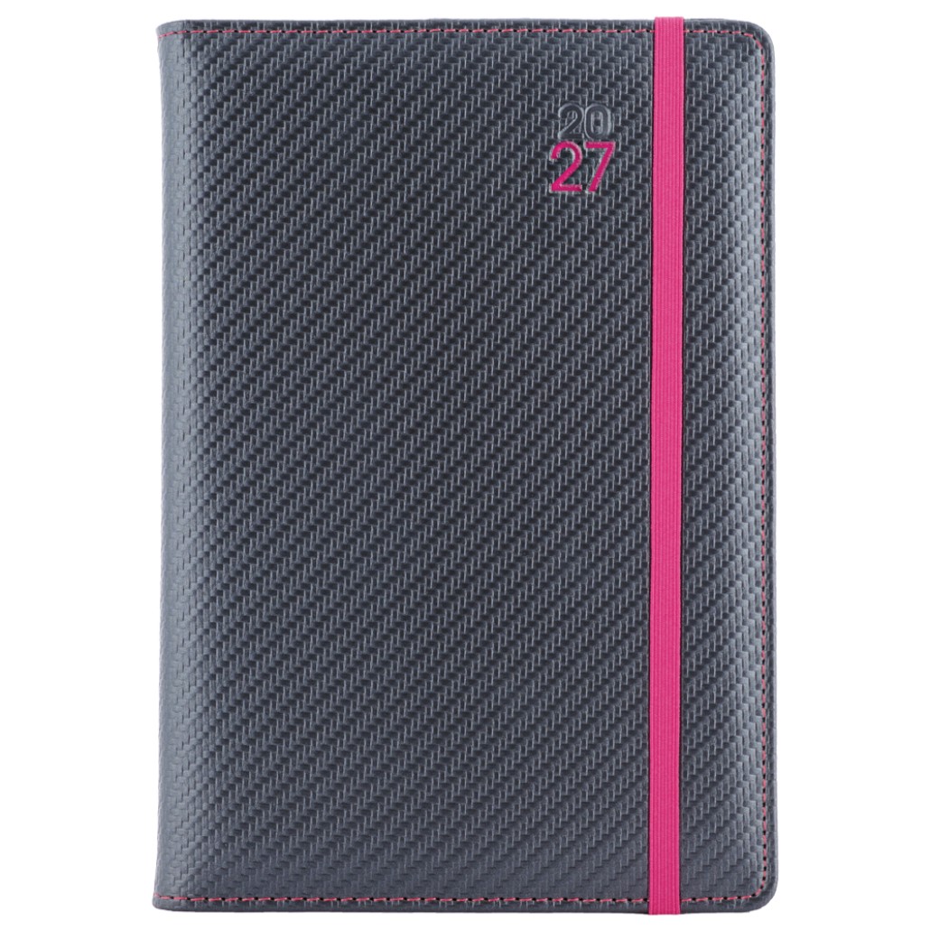 Kalendarz książkowy ELASTIC dzienny A5 2027 słowacki?? - grafit/magenta gumka