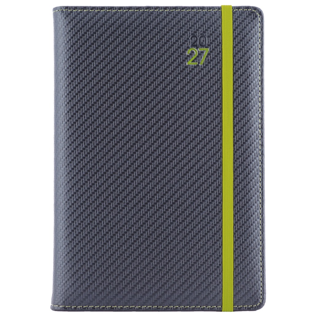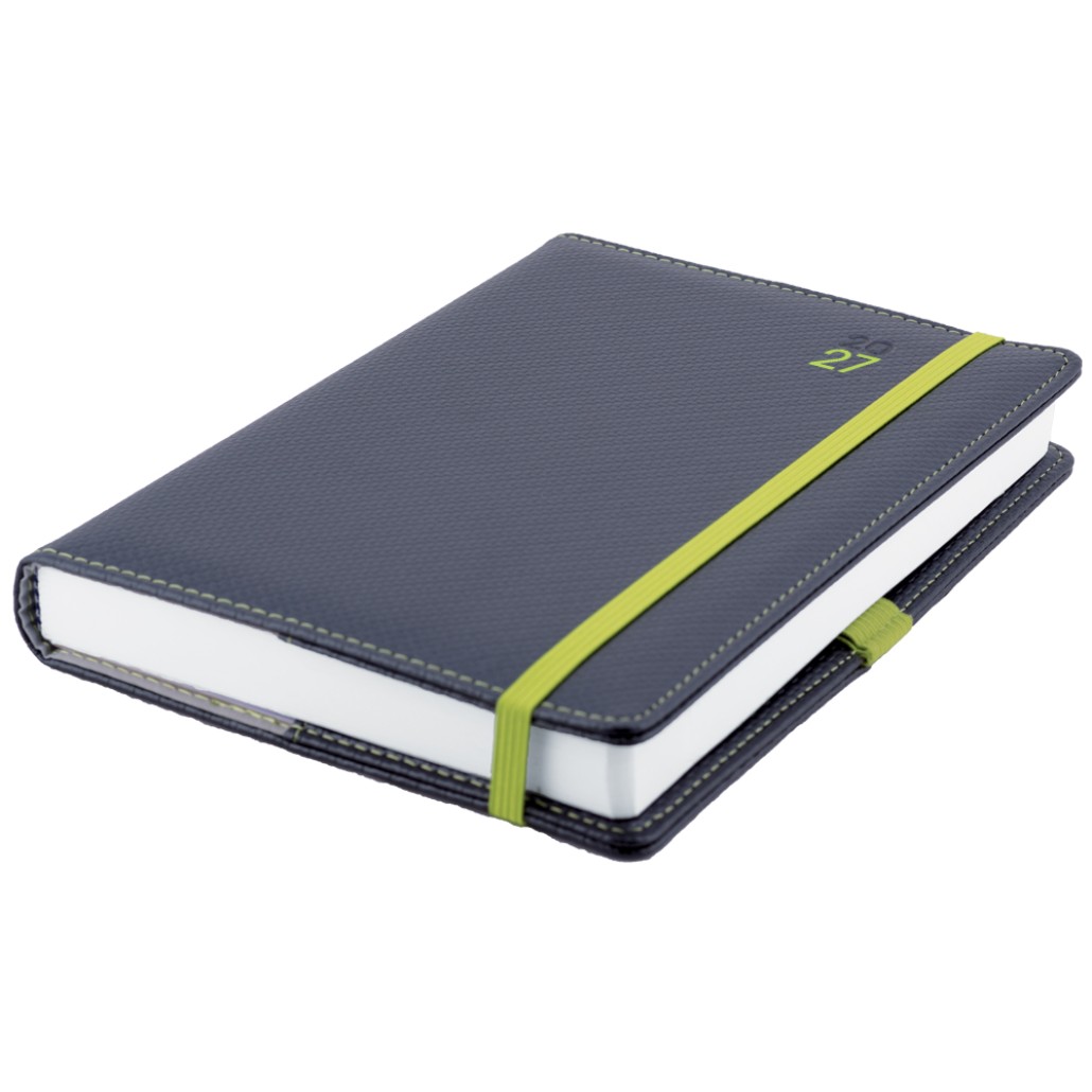 Kalendarz książkowy ELASTIC dzienny A5 2027 słowacki?? - grafit/zielona gumka