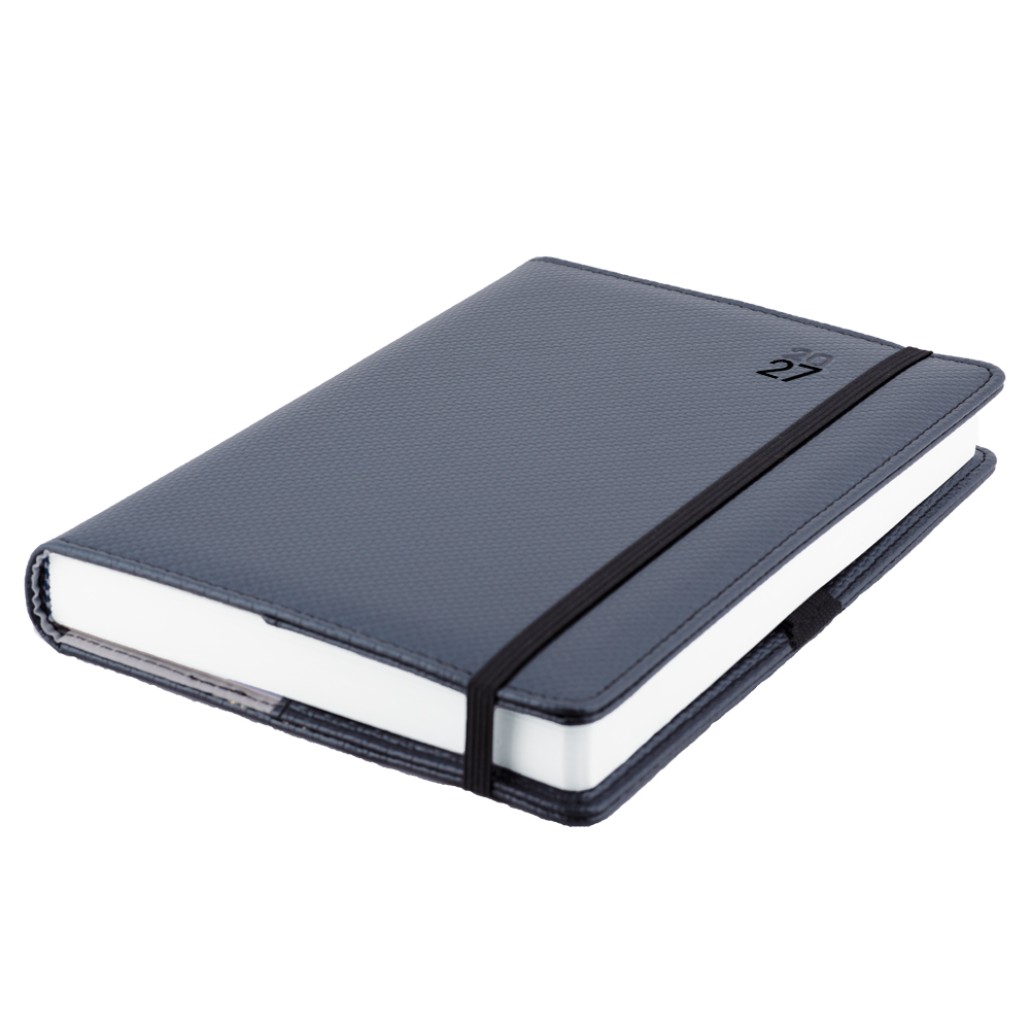 Kalendarz książkowy ELASTIC dzienny B6 2027 CZ/SK - grafit/czarna gumka