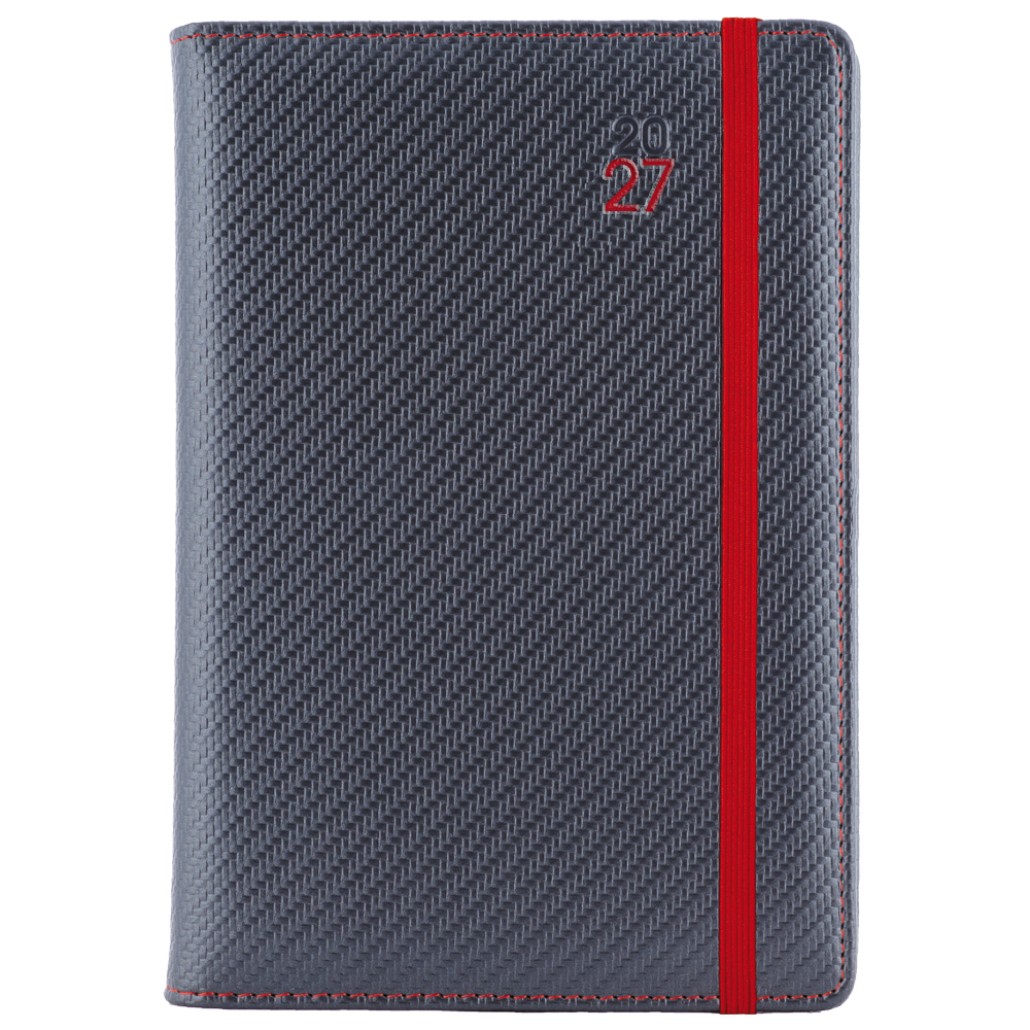 Kalendarz książkowy ELASTIC dzienny B6 2027 CZ/SK - grafit/czerwona gumka