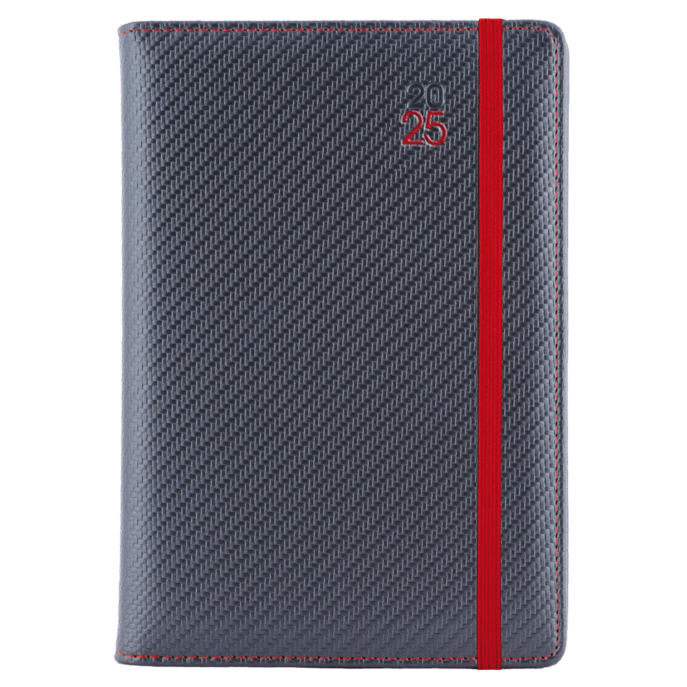 Kalendarz książkowy ELASTIC tygodniowy A5 2025 słowacki?? - grafit/czerwona gumka