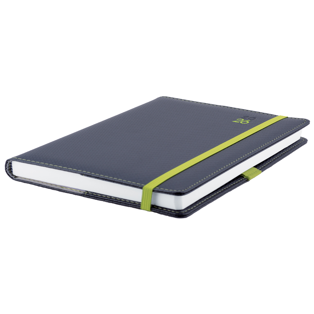 Kalendarz książkowy ELASTIC tygodniowy A5 2026 czeski - grafit/zielona gumka