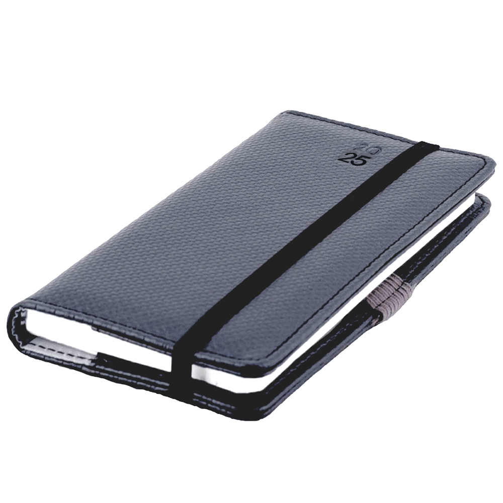 Kalendarz książkowy ELASTIC tygodniowy kieszonkowy 2025 polski - grafit/czarna gumka