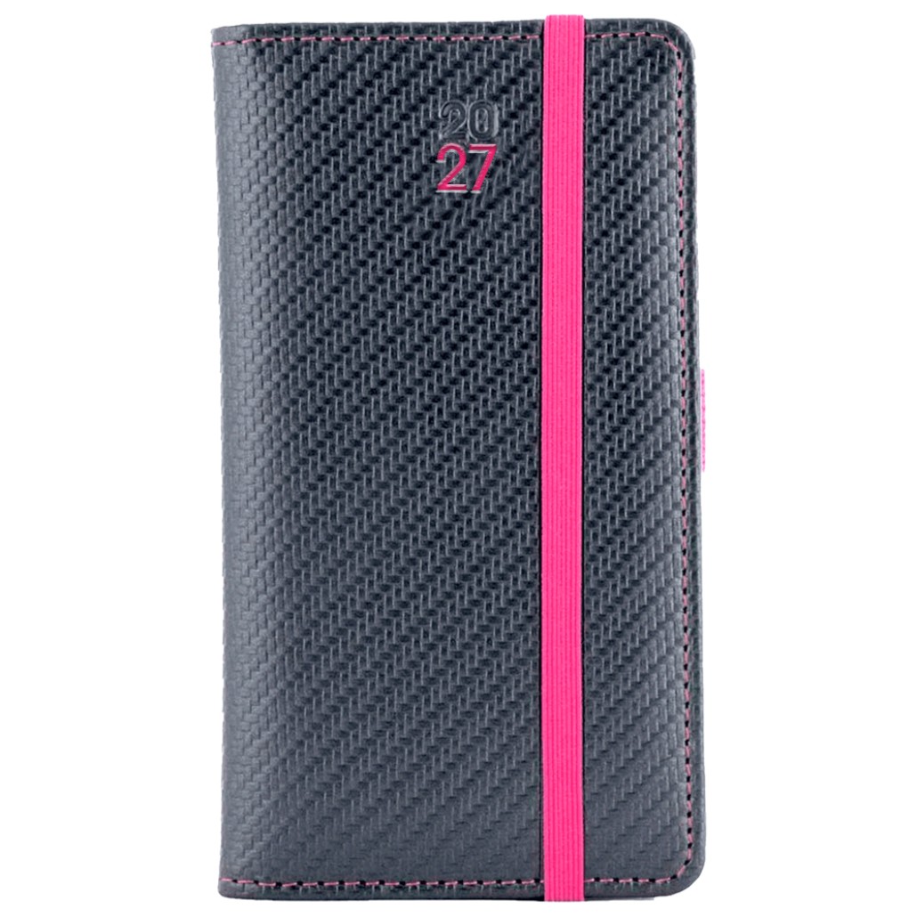 Kalendarz książkowy ELASTIC tygodniowy kieszonkowy 2027 czeski - grafit/magenta gumka