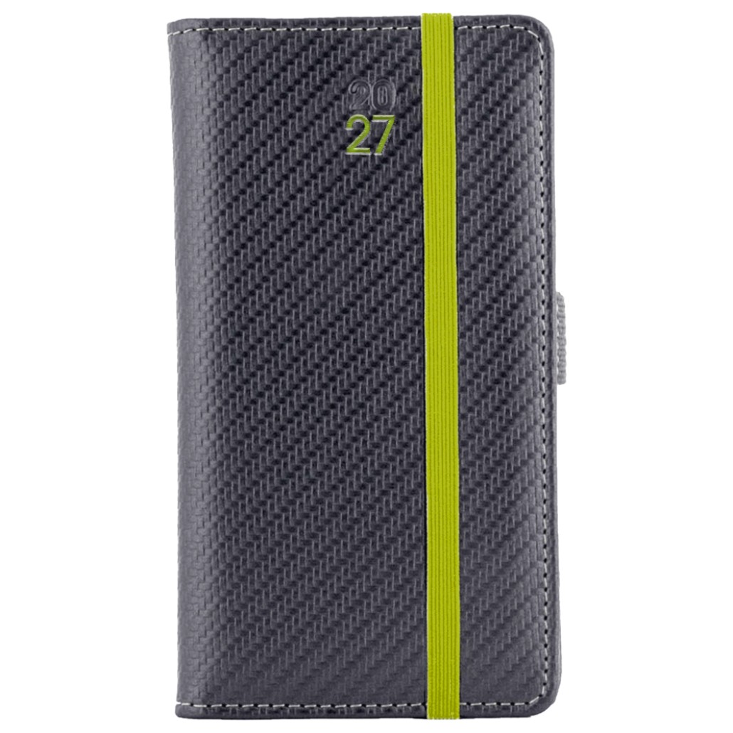 Kalendarz książkowy ELASTIC tygodniowy kieszonkowy 2027 czeski - grafit/zielona gumka