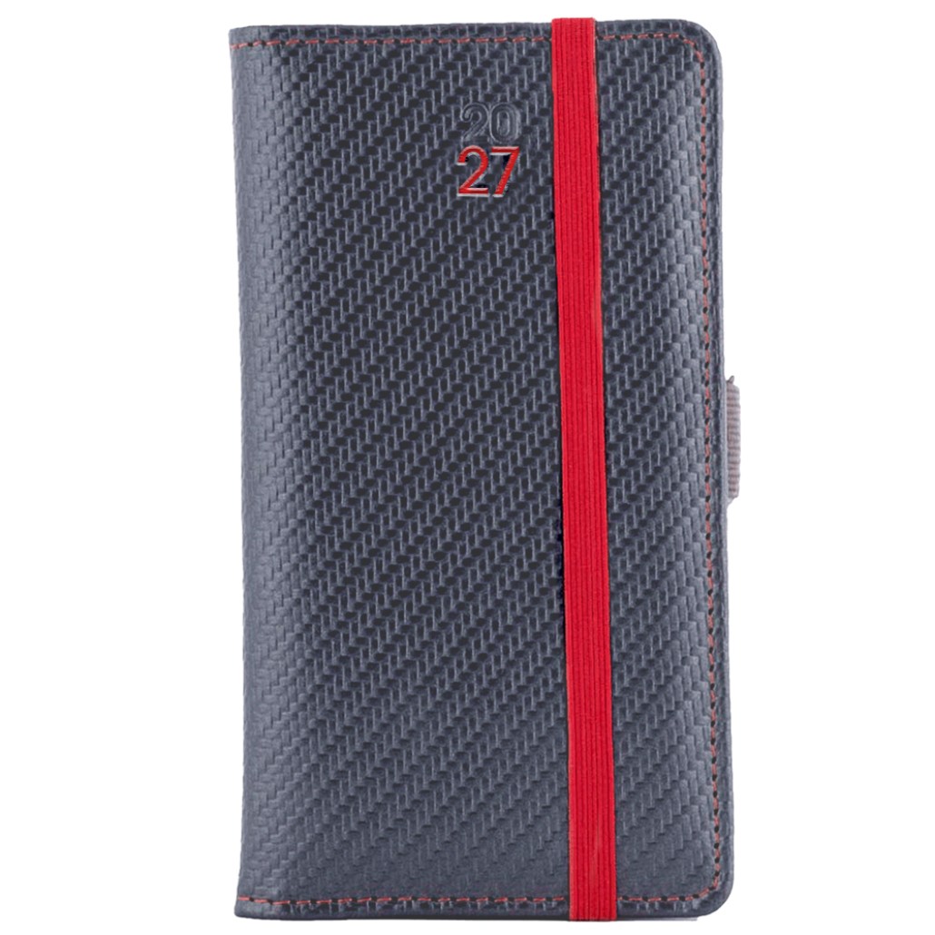 Kalendarz książkowy ELASTIC tygodniowy kieszonkowy 2027 słowacki?? - grafit/czerwona gumka