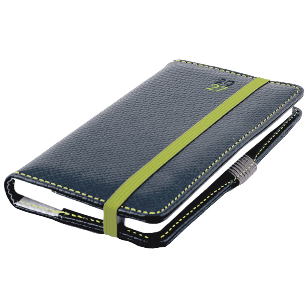 Kalendarz książkowy ELASTIC tygodniowy kieszonkowy 2027 słowacki?? - grafit/zielona gumka