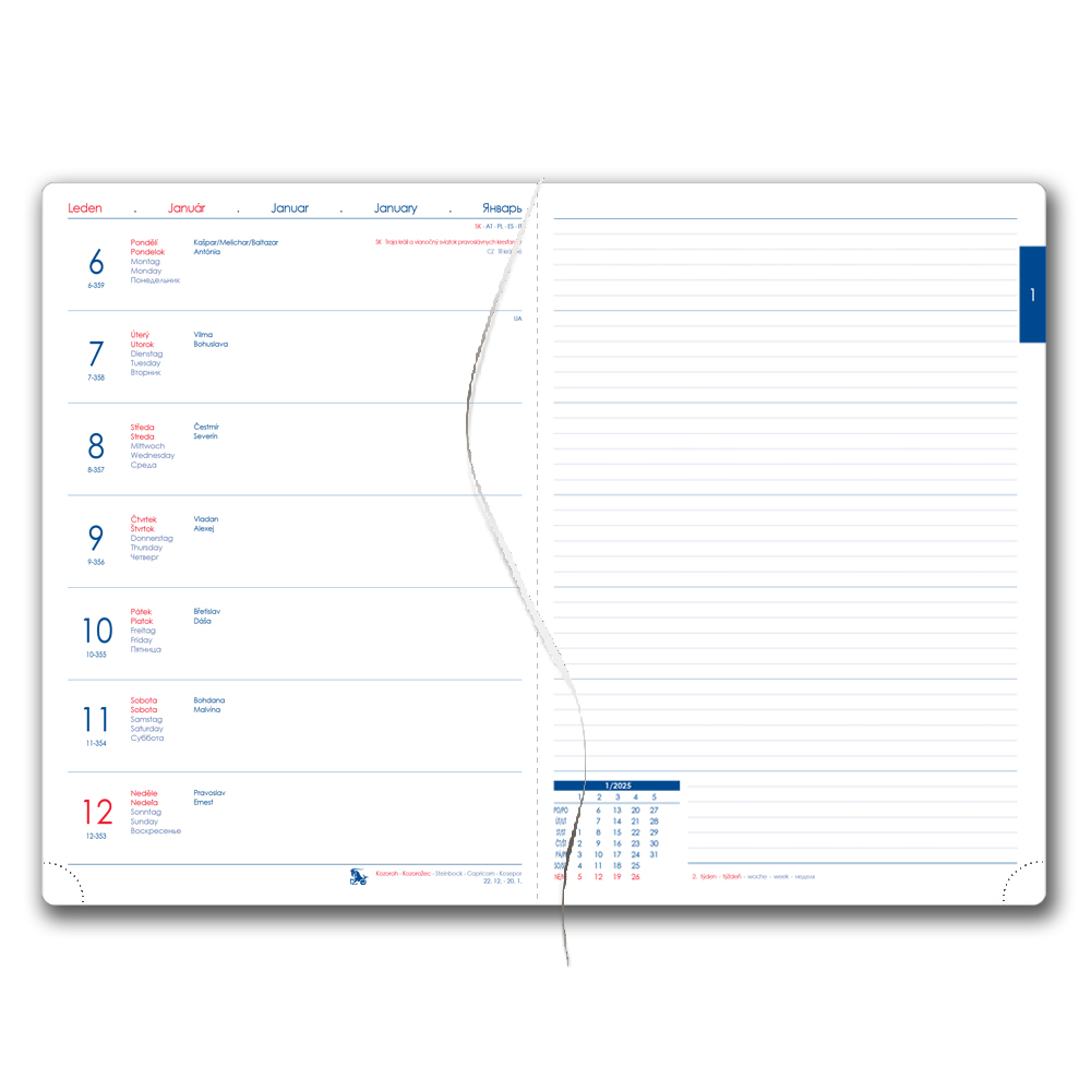 Kalendarium: tygodniowe CZ/SK (Lewa strona kalendarium, prawa strona notatnik)