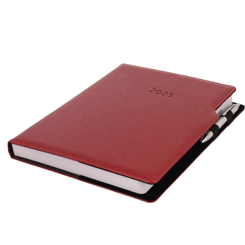 Kalendarz książkowy GEP z długopisem dzienny A4 2025 CZ/SK - bordowy