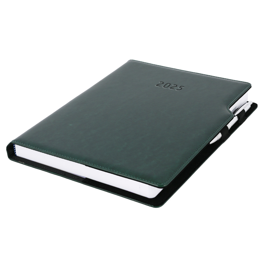 Kalendarz książkowy GEP z długopisem dzienny A4 2025 CZ/SK - zielony