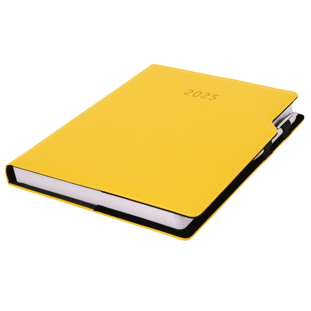 Kalendarz książkowy GEP z długopisem dzienny A4 2025 CZ/SK - żółty