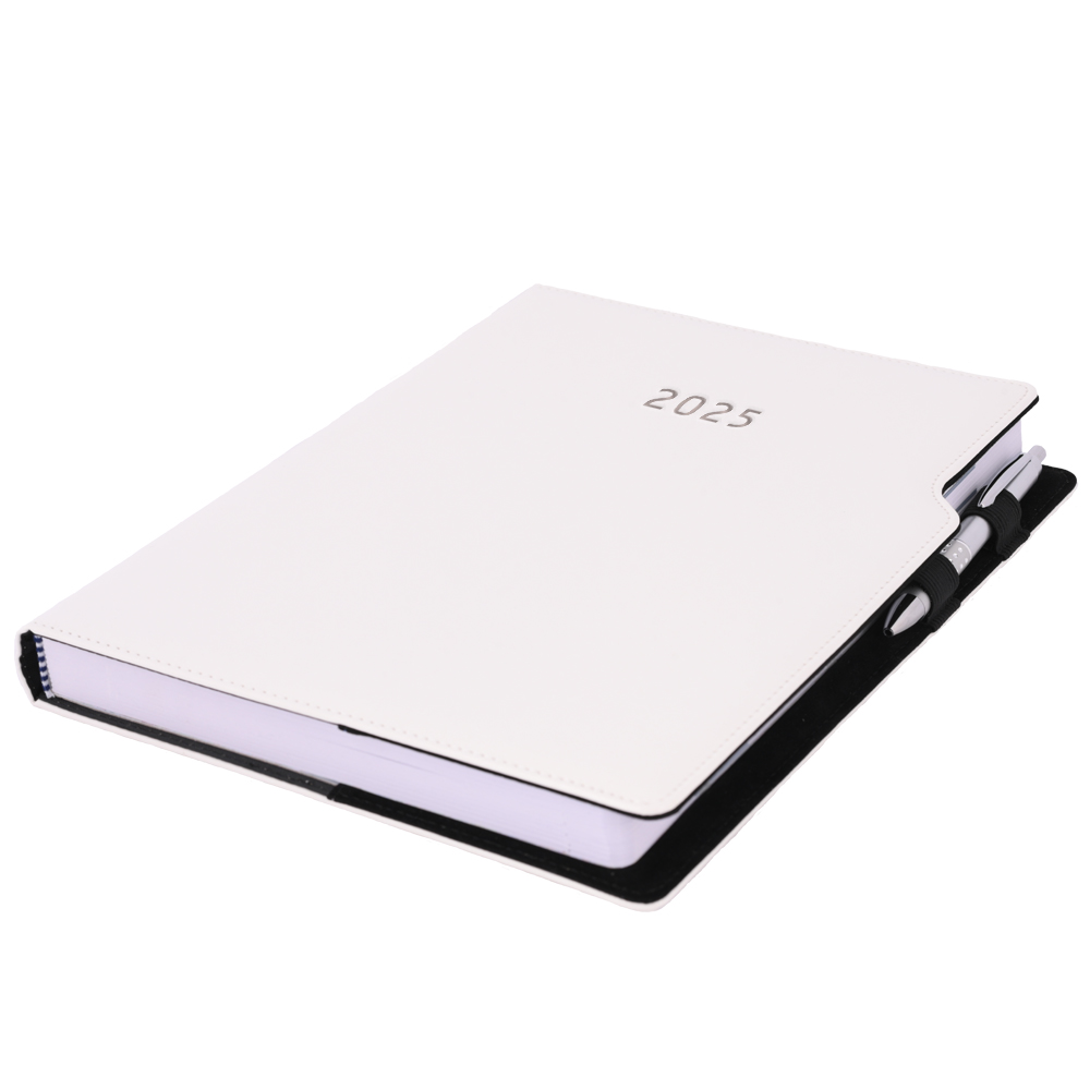 Kalendarz książkowy GEP z długopisem dzienny A4 2025 polski - biały (białe szwy)