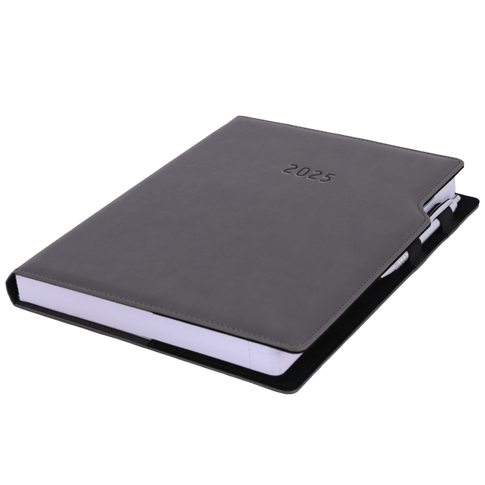 Kalendarz książkowy GEP z długopisem dzienny A4 2025 polski - szary