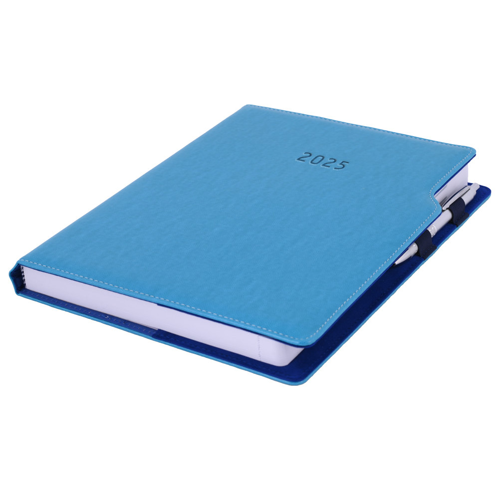 Kalendarz książkowy GEP z długopisem dzienny A4 2025 polski - turkusowy (niebieskie wnętrze)