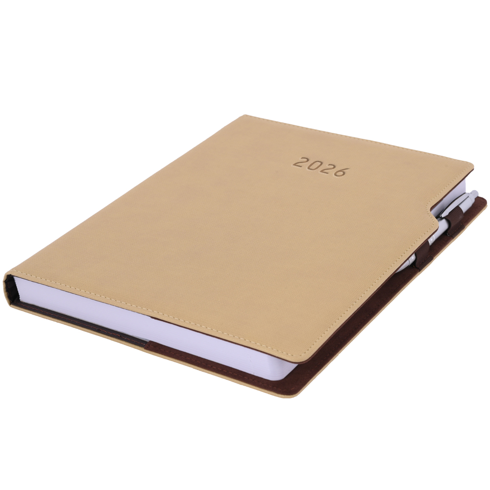 Kalendarz książkowy GEP z długopisem dzienny A4 2026 CZ/SK - beżowy