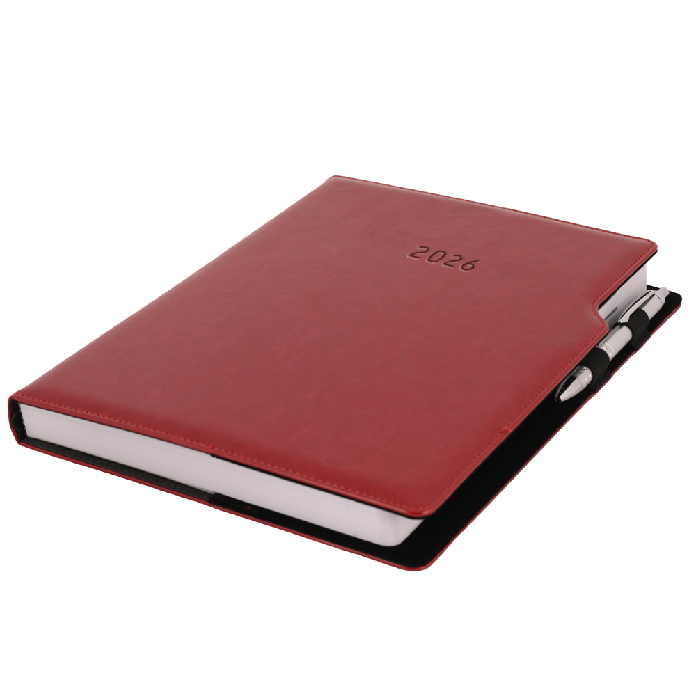 Kalendarz książkowy GEP z długopisem dzienny A4 2026 CZ/SK - bordowy