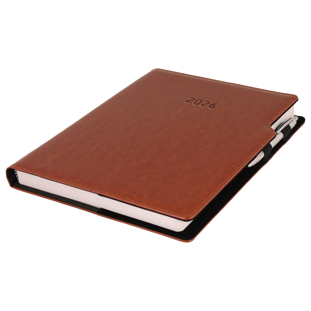 Kalendarz książkowy GEP z długopisem dzienny A4 2026 CZ/SK - brązowy