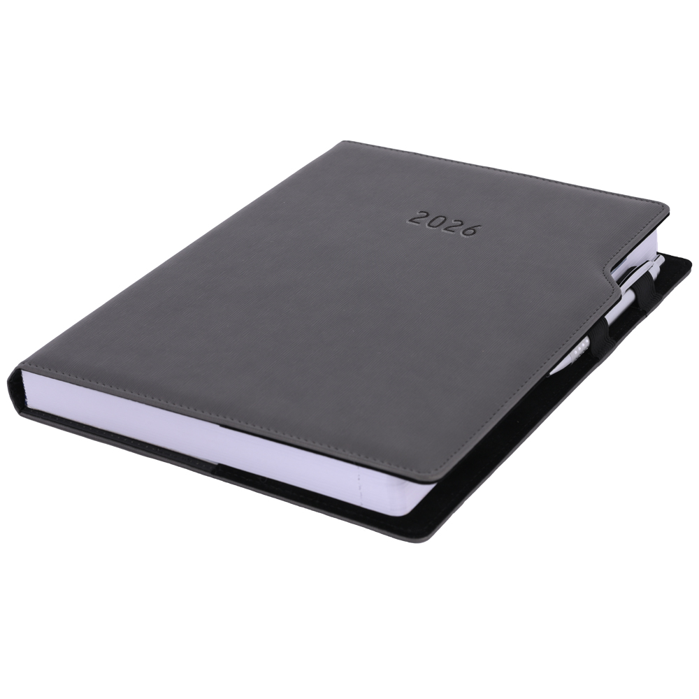 Kalendarz książkowy GEP z długopisem dzienny A4 2026 CZ/SK - szary
