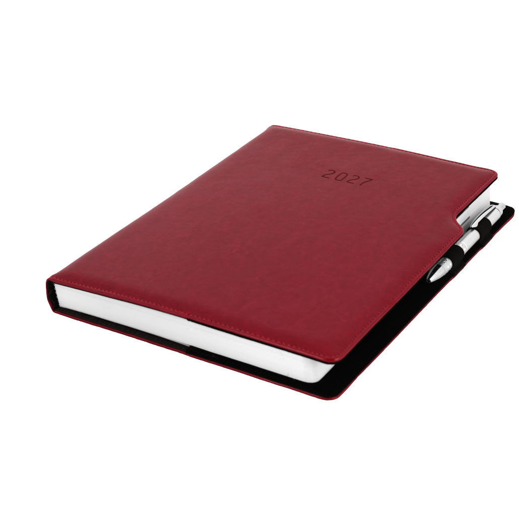 Kalendarz książkowy GEP z długopisem dzienny A4 2027 CZ/SK - bordowy