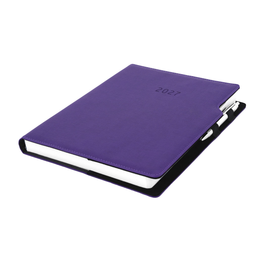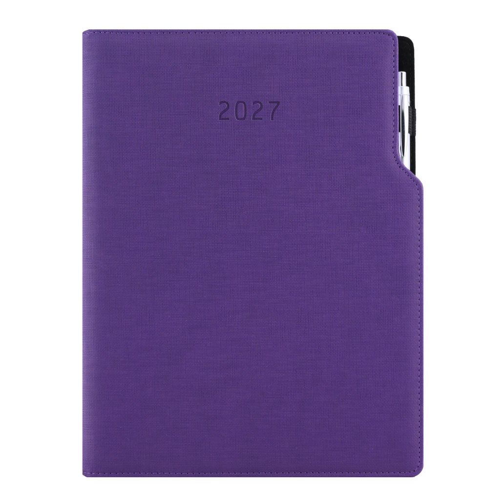 Kalendarz książkowy GEP z długopisem dzienny A4 2027 CZ/SK - fioletowy