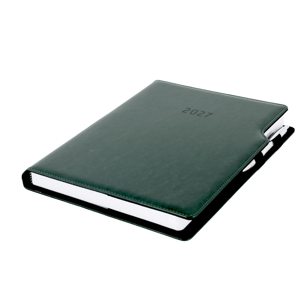 Kalendarz książkowy GEP z długopisem dzienny A4 2027 CZ/SK - zielony