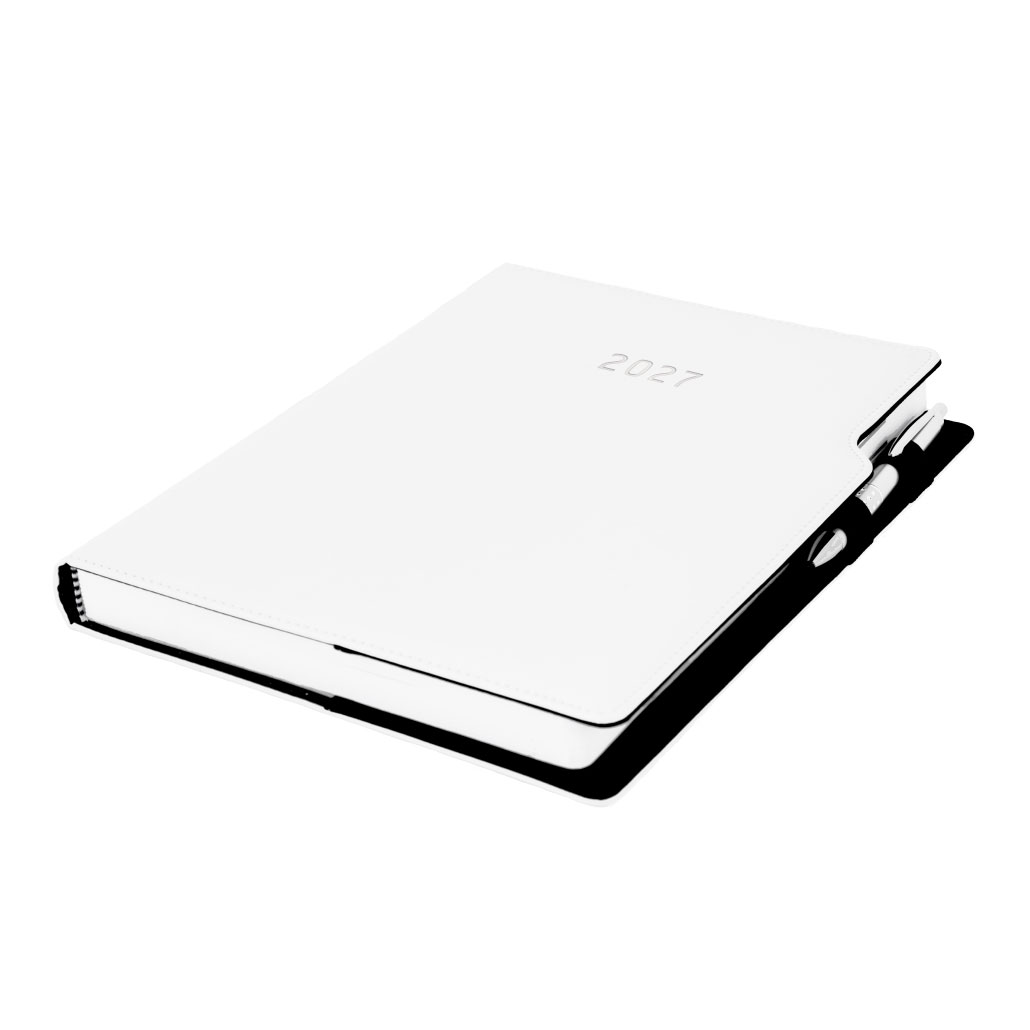 Kalendarz książkowy GEP z długopisem dzienny A4 2027 polski - biały (białe szwy)