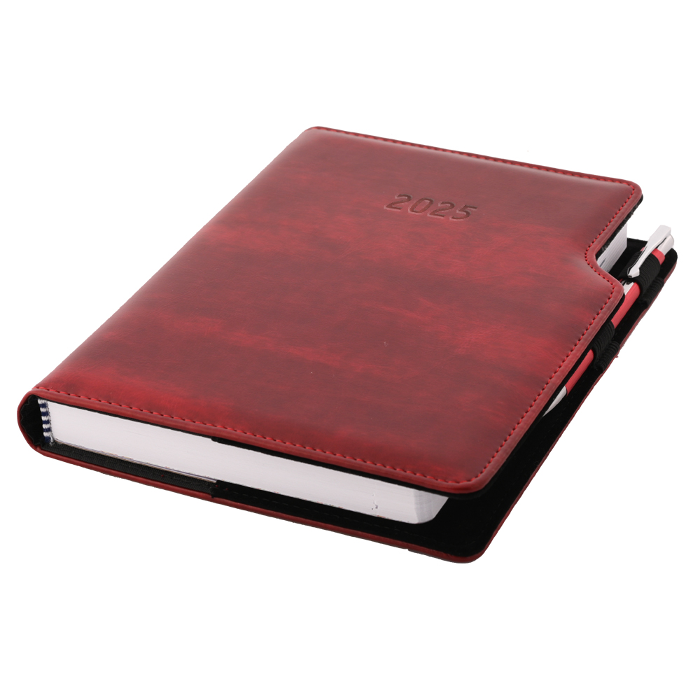 Kalendarz książkowy GEP z długopisem dzienny A5 2025 polski - bordowy smugowaty