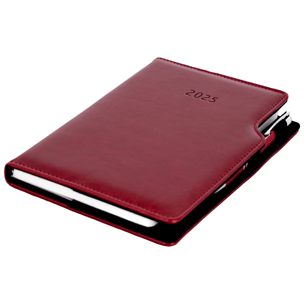 Kalendarz książkowy GEP z długopisem dzienny A5 2025 polski - bordowy