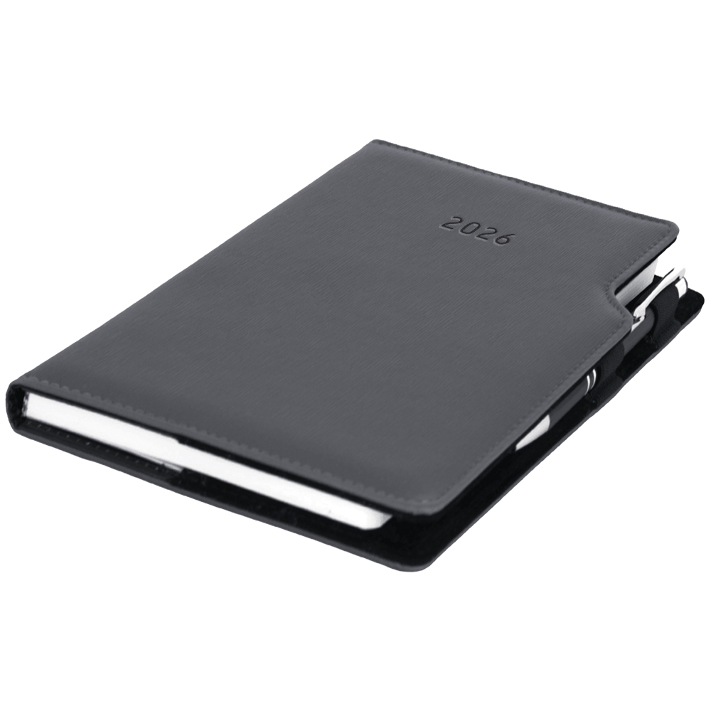 Kalendarz książkowy GEP z długopisem dzienny A5 2026 polski - szary