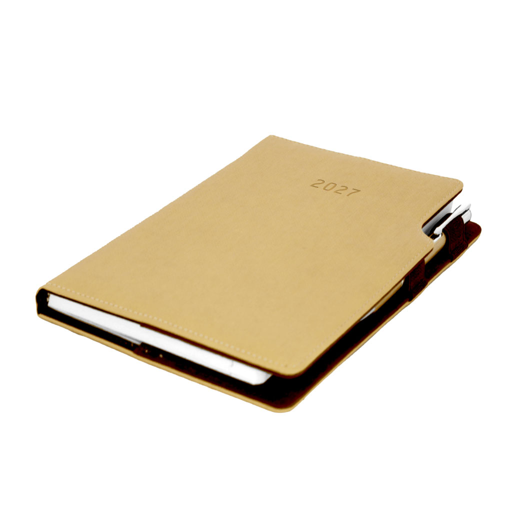 Kalendarz książkowy GEP z długopisem dzienny A5 2027 czeski - beżowy