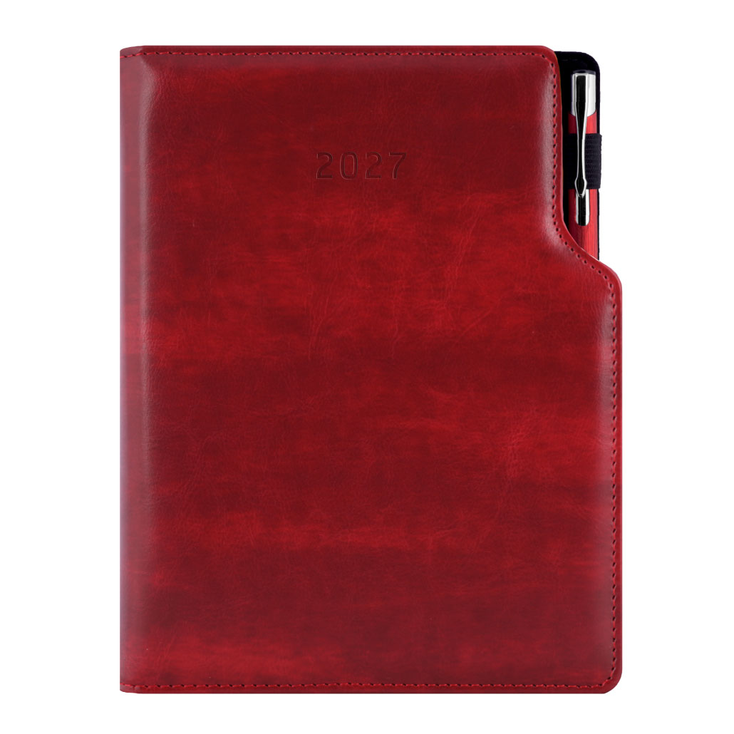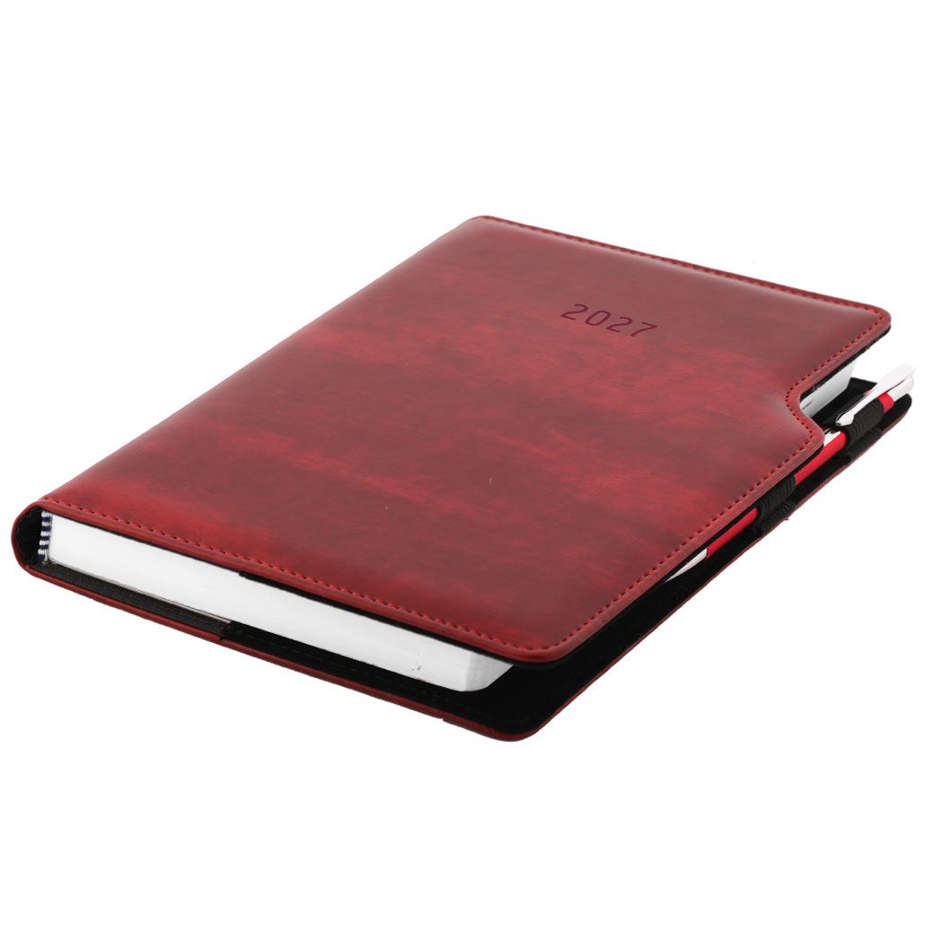Kalendarz książkowy GEP z długopisem dzienny A5 2027 polski - bordowy smugowaty