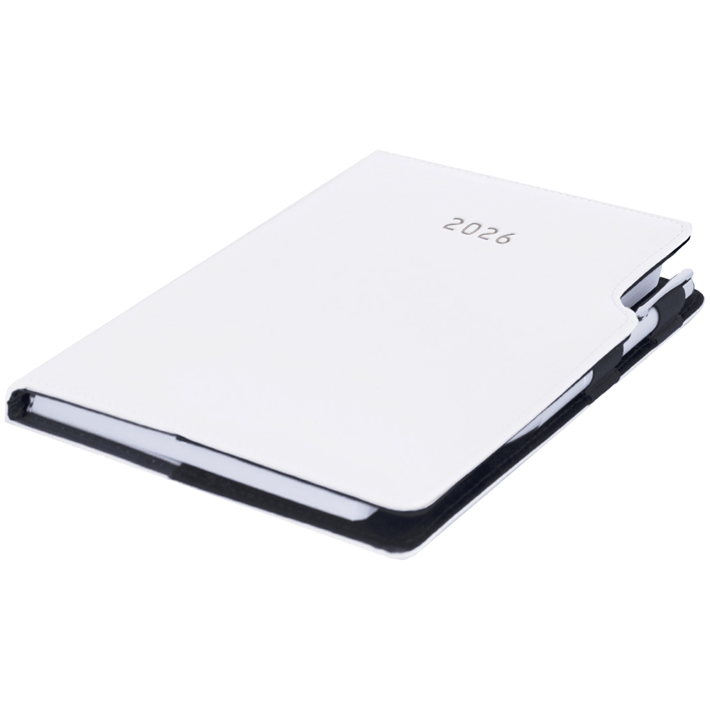 Kalendarz książkowy GEP z długopisem dzienny B6 2026 CZ/SK - biały (białe szwy)