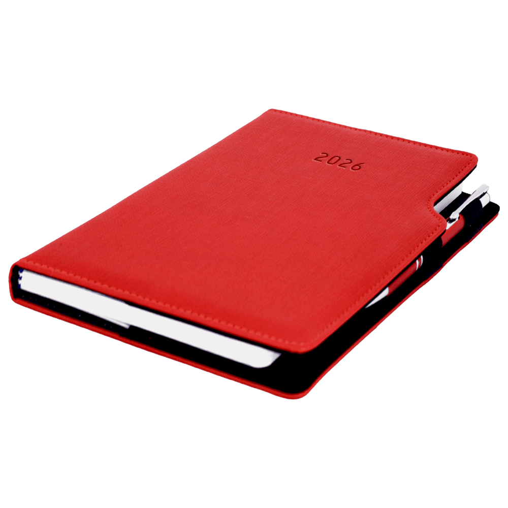 Kalendarz książkowy GEP z długopisem dzienny B6 2026 CZ/SK - czerwony