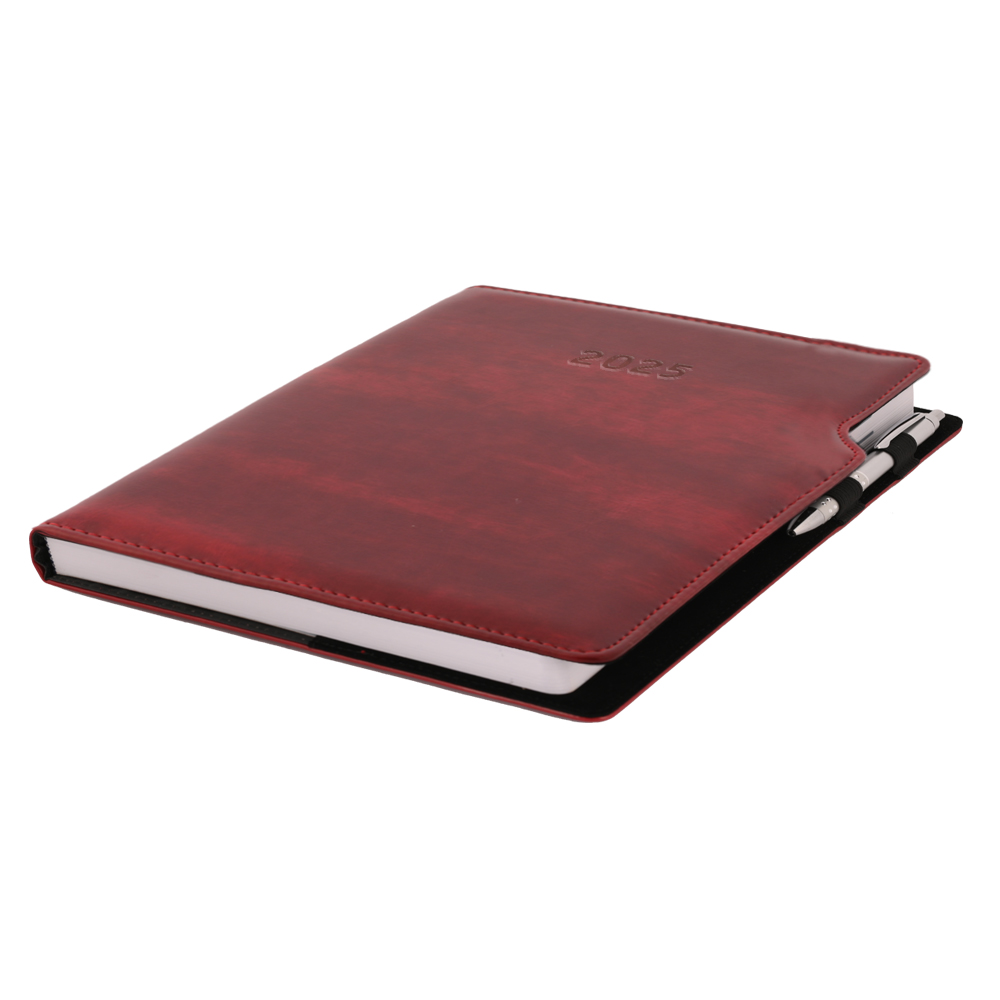 Kalendarz książkowy GEP z długopisem tygodniowy A4 2025 CZ/SK - bordowy smugowaty