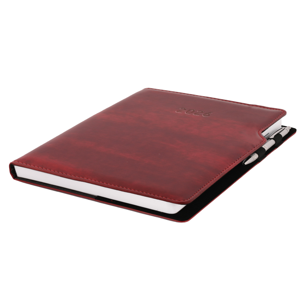 Kalendarz książkowy GEP z długopisem tygodniowy A4 2026 CZ/SK - bordowy smugowaty