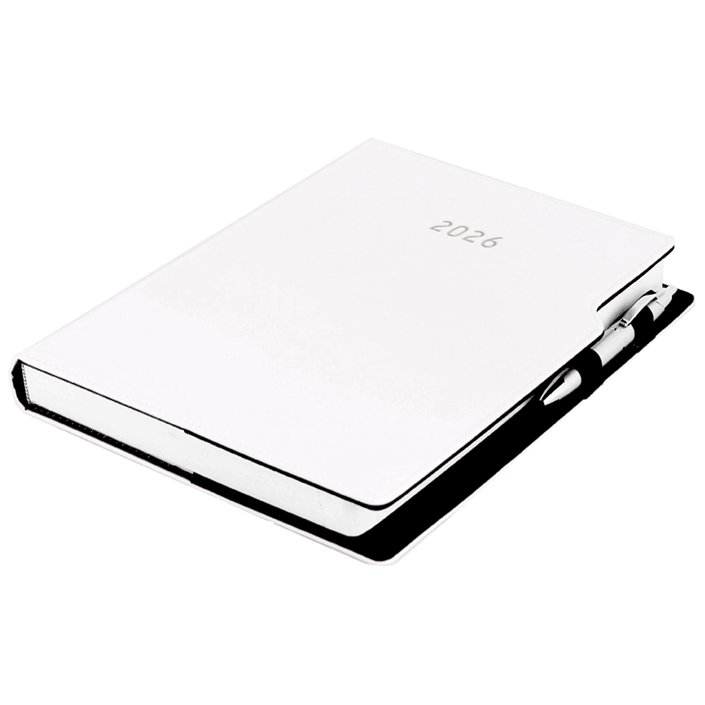 Kalendarz książkowy GEP z długopisem tygodniowy A4 2026 polski - biały (białe szwy)