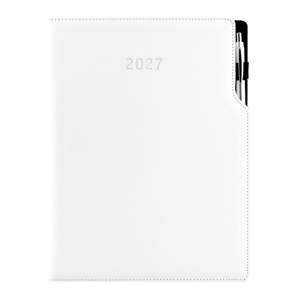 Kalendarz książkowy GEP z długopisem tygodniowy A4 2027 CZ/SK - biały (białe szwy)