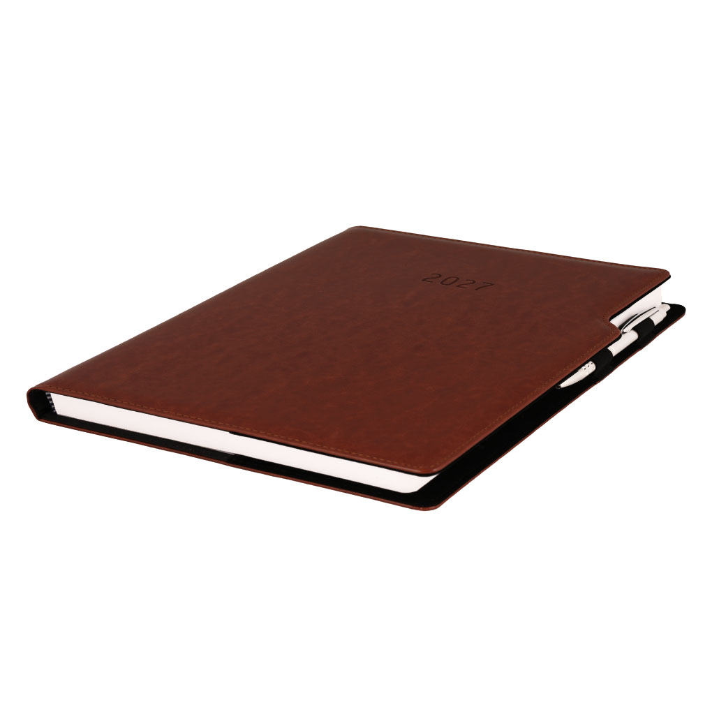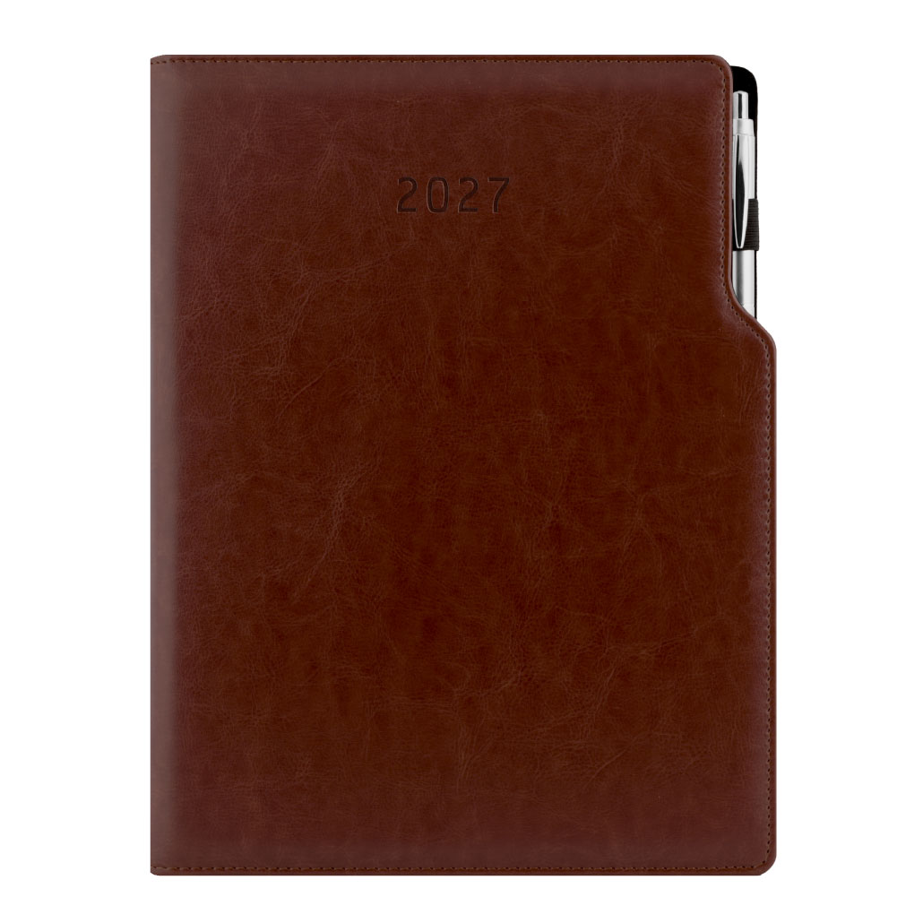 Kalendarz książkowy GEP z długopisem tygodniowy A4 2027 CZ/SK - brązowy