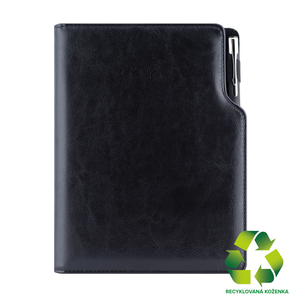 Kalendarz książkowy GEP z długopisem tygodniowy A5 2027 czeski - czarny (czarne wnętrze) - skóra ekologiczna z recykling