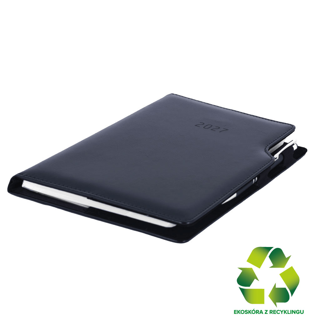 Kalendarz książkowy GEP z długopisem tygodniowy A5 2027 polski - czarny (czarne wnętrze) - skóra ekologiczna z recykling