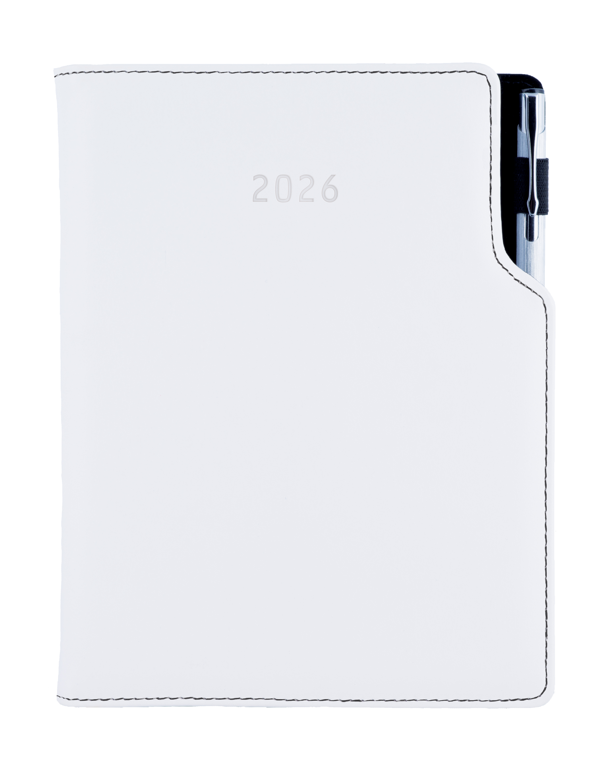 Kalendarz książkowy GEP z długopisem tygodniowy B5 2026 polski - biały (czarne szwy)