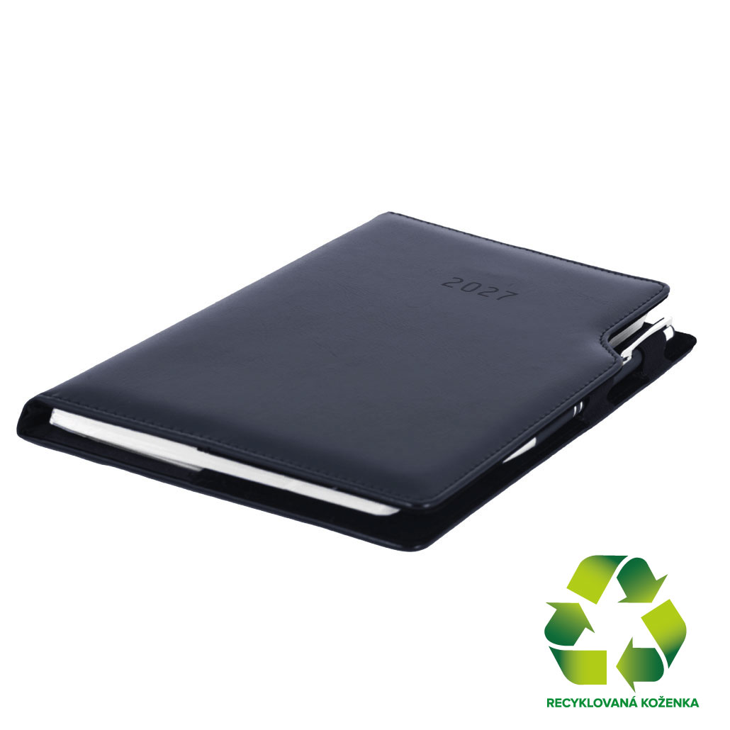Kalendarz książkowy GEP z długopisem tygodniowy B5 2027 CZ/SK - czarny (czarne wnętrze) - skóra ekologiczna z recyklingu