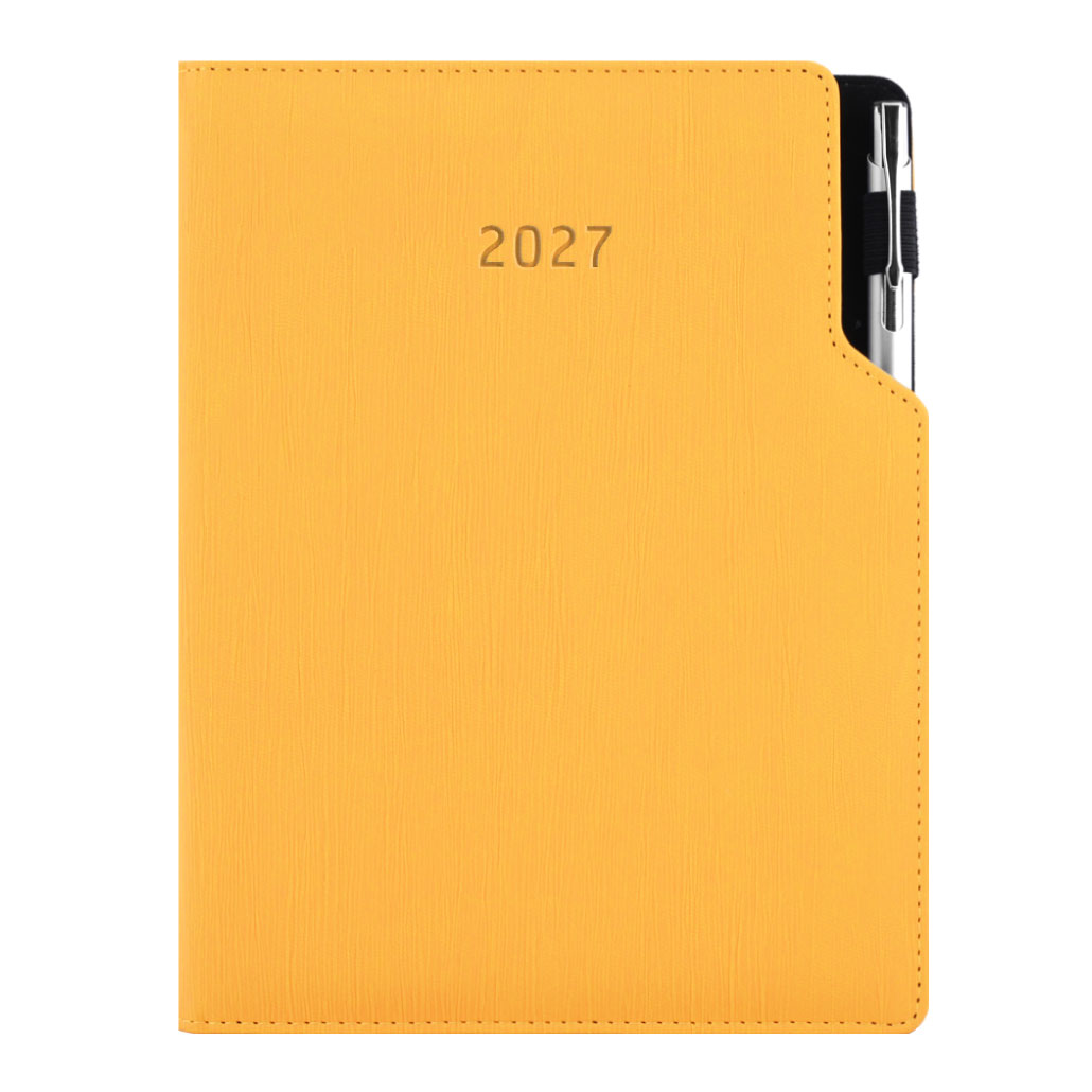 Kalendarz książkowy GEP z długopisem tygodniowy B5 2027 CZ/SK - musztardowy