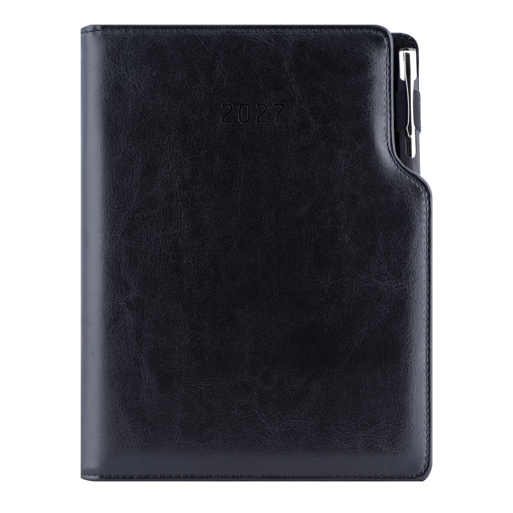Kalendarz książkowy GEP z długopisem tygodniowy B6 2027 CZ/SK - czarny (czarne wnętrze)