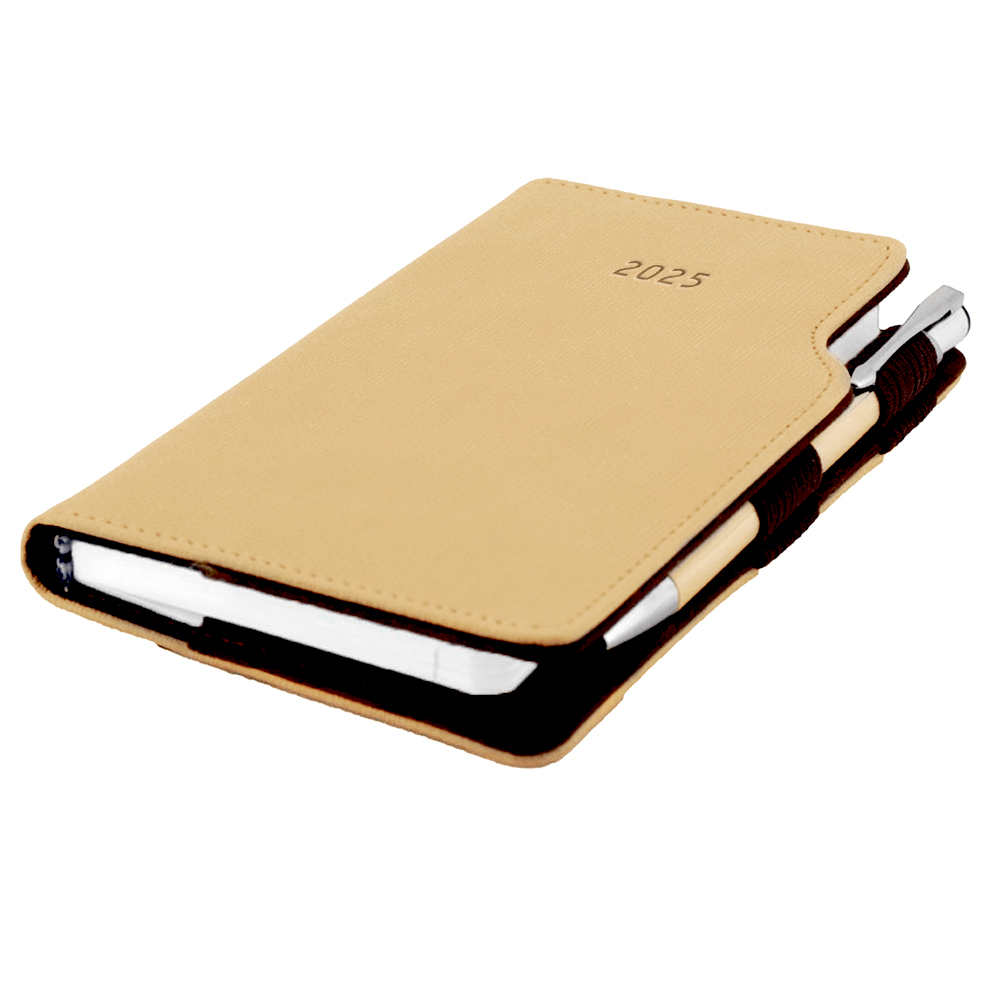Kalendarz książkowy GEP z długopisem tygodniowy kieszonkowy 2025 polski - beżowy
