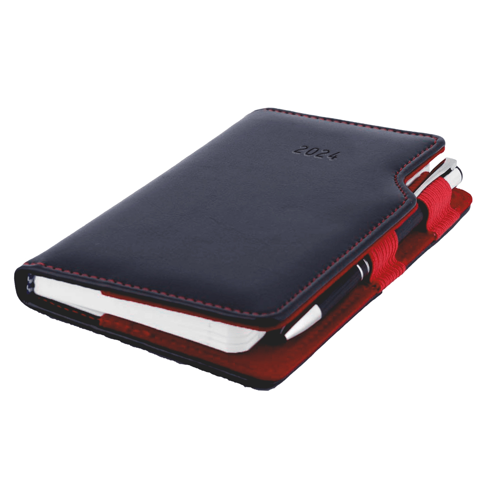 Kalendarz książkowy GEP z długopisem tygodniowy kieszonkowy 2025 polski - czarny (czerwone wnętrze)