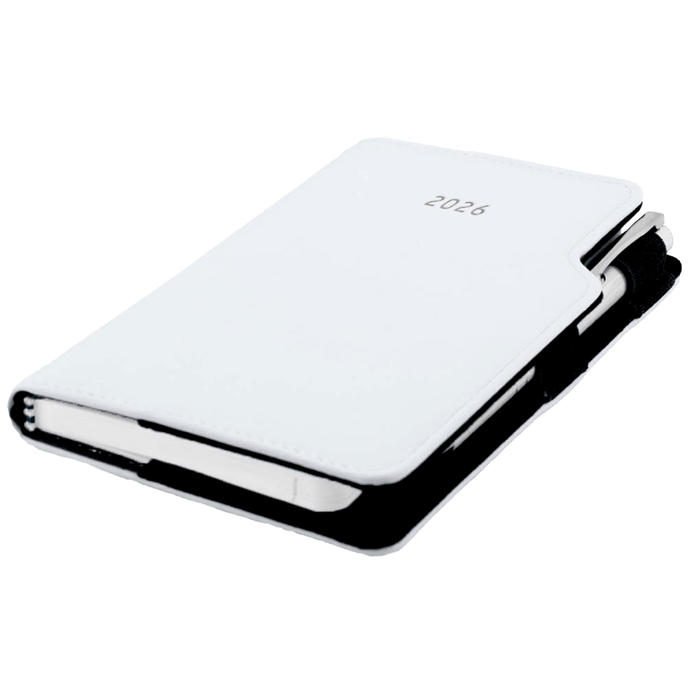 Kalendarz książkowy GEP z długopisem tygodniowy kieszonkowy 2026 słowacki?? - biały (białe szwy)